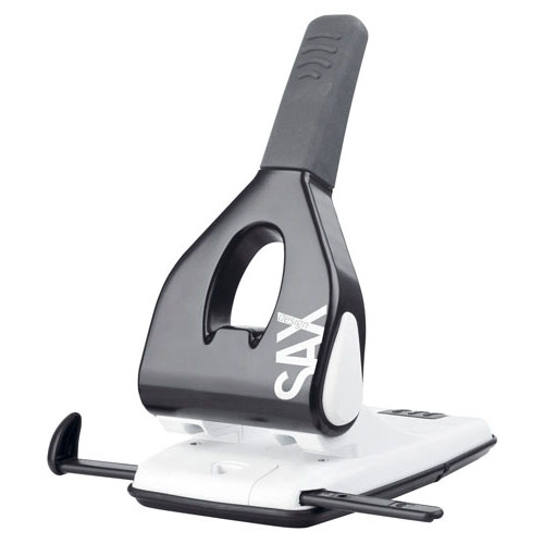 Nagy teljesítményű, könnyűfém testű, karos lyukasztógép, műanyag ütköztetőléc, gumírozott nyomófelület. A lyukasztóbélyeg mechanikájának köszönhetően 50%-kal kevesebb erőkifejtés szükséges a lapok átlyukasztásához. Egyszerre lyukasztható lapok száma: max. 65 lap. Lyuktávolság: 80 mm. Lyukátmérő: 5,5 mm. Keresse a SAX DESIGN fűzőgépeket is!
