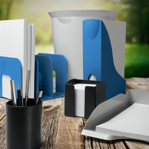 Klasszikus jegyzettömbtartó. Újrahasznosított műanyagból készült, Blue Angel minőségben. 800 db jegyzetlappal, mely újrahasznosított papírból készült, Blue Angel minőségben, 93 x 93 mm-es méretben. Nagy mennyiség. A lapok könnyedén kivehetők a nyitott előlapnak köszönhetően. Méretek: 100 x 105 x 100 mm. Újrahasznosított műanyagból készült ECO termékcsalád, Blue Angel minőségben.