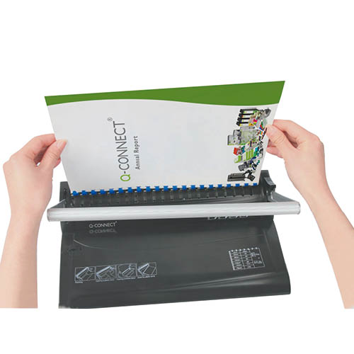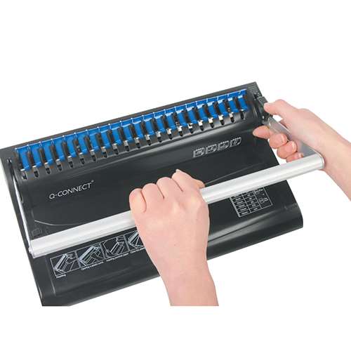 Q-Connect Comb Binder 8 spirálozógép. Maximális kötési kapacitás: 140 lap. Maximális lyukasztókapacitás: 8 lap. Lyukak száma: 21. Lyukasztási margó: 2 mm. Maximális spirálnagyság: 16 mm. Tökéletes jelentések, prezentációk és céges dokumentumok készítésére. Ezt a gazdaságos spirálozógépet könnyű használni és mindig professzionális megjelenésű dokumentumokat kaphatunk segítségével. Mérete: 350 x 195 x 90 mm.