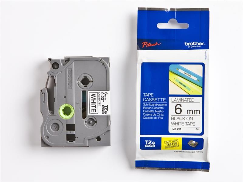 Betűnyomó kazetta 6mm Brother TZe211 fehér-fekete