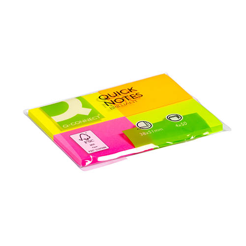 Öntapadós jegyzettömb 40x50mm 4x50lap Q-CONNECT KF10510 Brilliant Rainbow neon